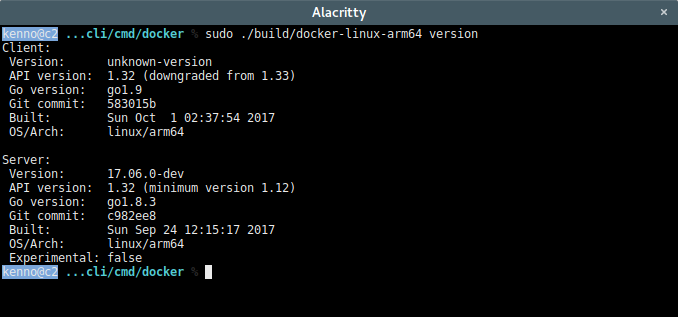 Anyway, after some more times, I also managed building the Docker client for the Odroid C2. It turned out, like many things, it wasn’t that hard after you figured it out. It’s worth to note too that the build instruction on https://github.com/docker/cli is to use Docker container. It didn’t work for me, and I decided to just build the Docker cli locally on the Odroid C2 instead.